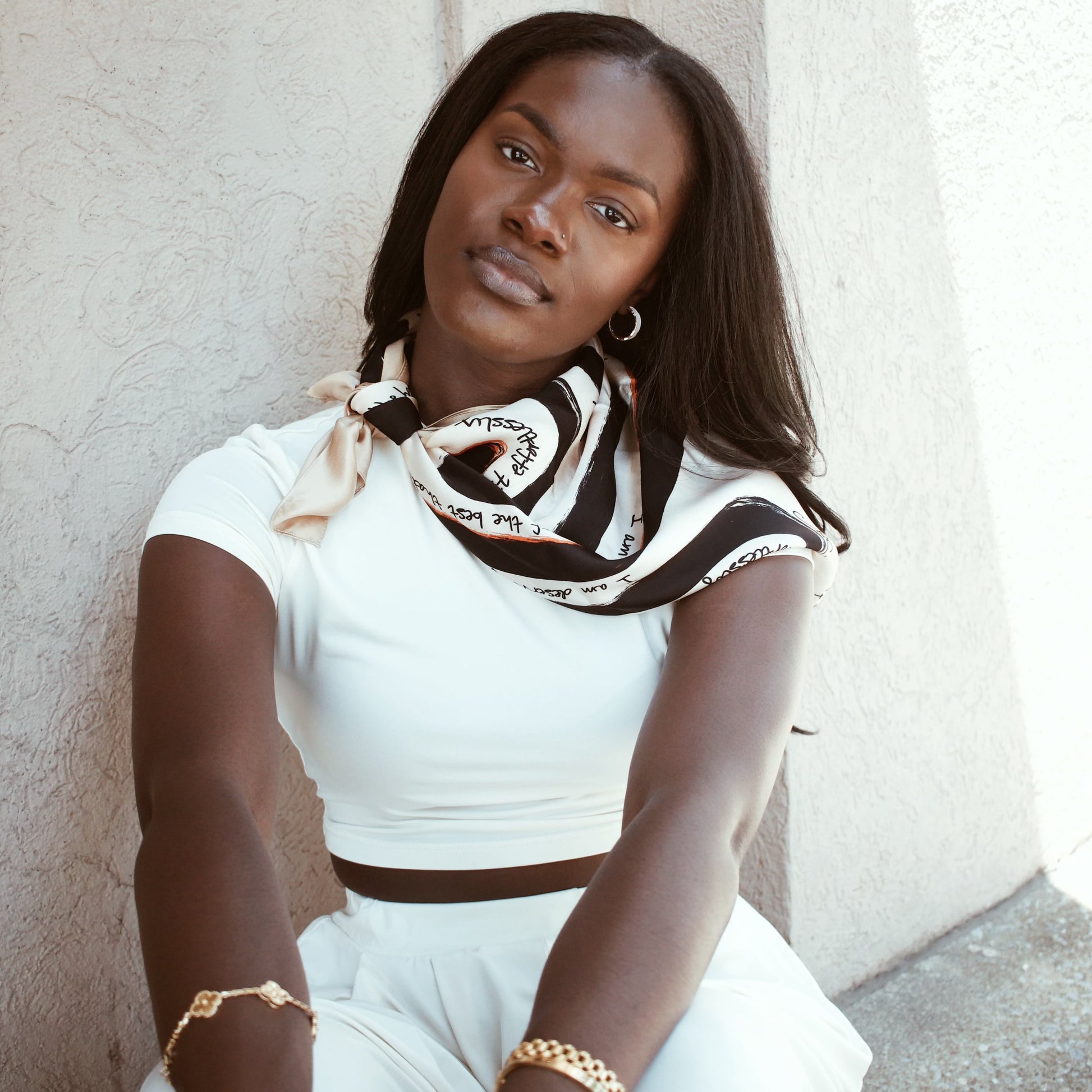 Every Creed & Cloth scarf is a canvas of possibility. Inspired by the Law of Attraction, the design intertwines elegant brushstrokes and handwritten lettering, symbolising your ability to "paint" your life and "write your own story". Each time you tie this scarf around your head, let it be a reminder of your inherent power to shape your destiny, to manifest the life you desire and deserve. This scarf is more than an accessory; it's a daily affirmation of your strength, a testament to the belief that you are the architect of your own journey.